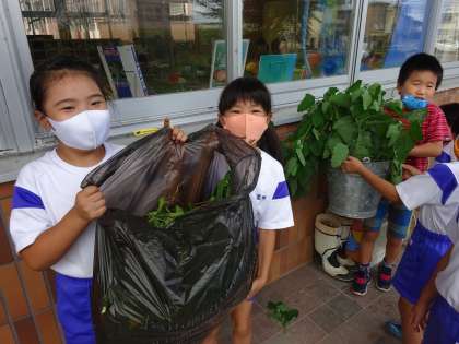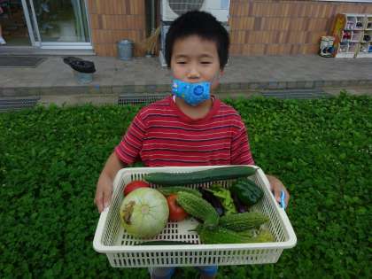 2年生 生活「野菜」 公開日 2020/07/22 更新日 2020/07/22 2年生 良い天気が続き、たくさんの野菜の収穫ができました。また、畑の草を取ったり、追肥をしたりして、心を込めてお世話をしました!