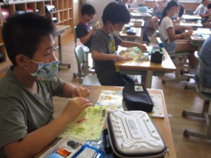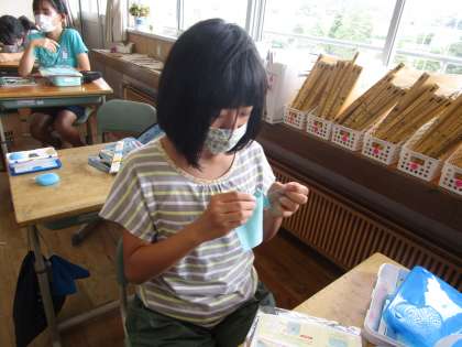 5年生 この頃の様子5 公開日 2020/07/27 更新日 2020/07/27 5年生 家庭科では、手縫いにチャレンジしています。糸を通したり、ひと針縫ったりと真剣に取り組んでいます。玉結びや玉どめは、なかなか難しいです。 がんばっています!!