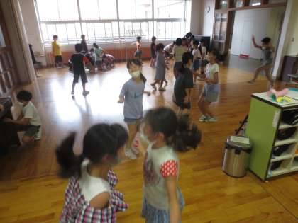今日はグラウンドや体育館が使用できない日ですが、オープンスペースでそれぞれの時間を楽しんでいます。