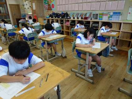 今日は、国語の学習のたしかめテストがありました。 朝から、緊張している人もいました。 力を発揮できたかな?