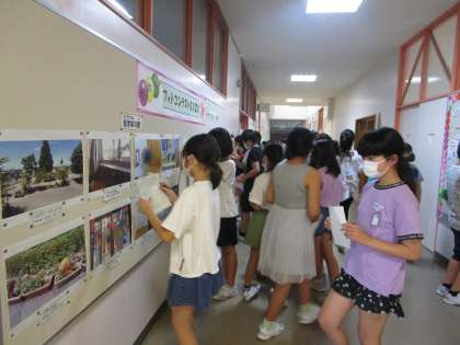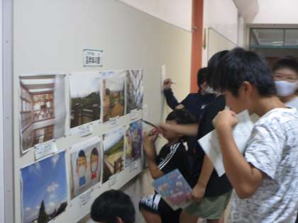 体育館に行く途中の廊下に、各クラスから選ばれた写真が飾ってあります。