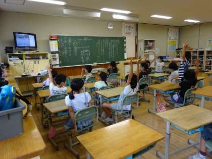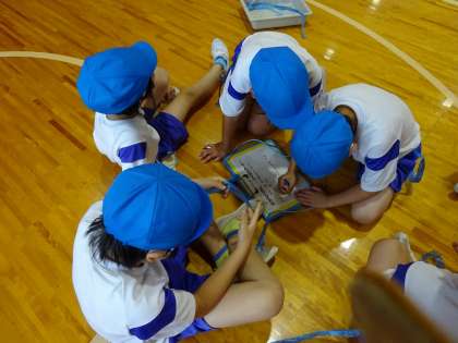 2年生 体育・集会 公開日 2020/07/29 更新日 2020/07/29 2年生 体育では、団で作戦を話合って宝取り鬼をしました。チームの皆で協力して活動することができました! 給食後には、集会委員会企画のリモートでの集会がありました。全校でクイズを楽しみました!