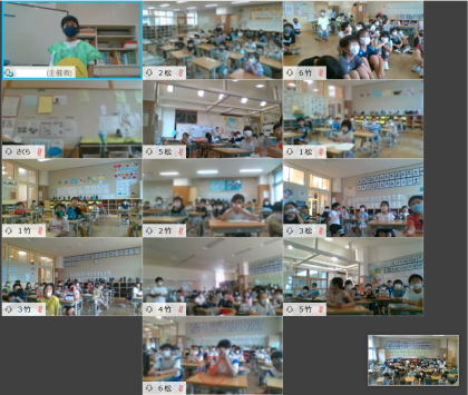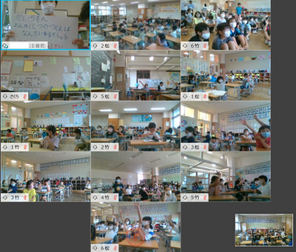 集会委員会 オンラインでつながった!! 公開日 2020/07/29 更新日 2020/07/29 委員会活動 今日は、集会委員会が企画した「つながろう集会」を行いました。新型コロナウイルス感染防止のため、これまでのように体育館で全校が集まることができません。そこで、今回はオンライン会議システムを活用した、オンライン集会を行いました。短めの集会ではありましたが、全教室がつながり、みんなうれしそうでした。次回も集会委員会のメンバーがバージョンアップした集会を企画する予定ですので、お楽しみに。