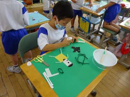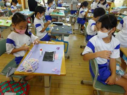2年生 図工「ざいりょうからひらめき」 公開日 2020/07/30 更新日 2020/07/30 2年生 材料をボンドでつけたり、クレヨン・絵の具等で絵を描いたりしました。イメージしたを表すことができ、子どもたちは喜んでいました!