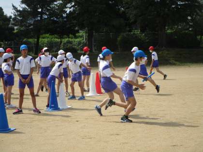 6年生 体育 松組 公開日 2020/07/31 更新日 2020/07/31 6年生 1時間目の体育はリレーでした。 バトンパスの練習をしました。 お互いに声をかけ合いながら、バトンを渡します。 なかなかうまく行きませんが、6年生らしいバトンパスを目指します。