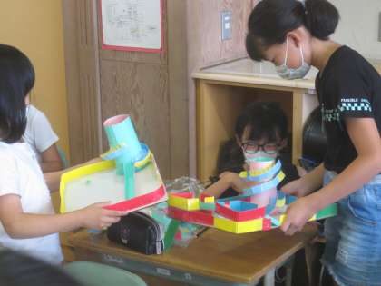 コロコロガーレの作品も完成に近づいてきました。友達と試しながら、楽しく作っています。
