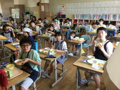 今日で、1学期の給食が最後になります。子供たちは、一品一品味わいながら、自分の分を残さず食べていました。