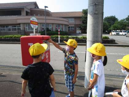 校長先生に暑中見舞いを出しました。1学期頑張ったことを伝えようと、一生懸命書いていた子供たちです。