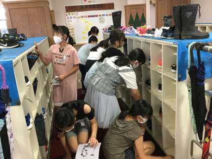 1学期に使った教室やロッカー、下足箱の掃除や整頓を行いました。2学期が気持ちよく始められるように、一人一人が雑巾を片手に時間いっぱい取り組みました。