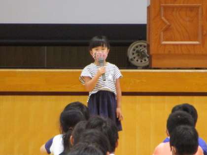 初めての終業式 公開日 2020/08/07 更新日 2020/08/07 1年生 静かに整列して座る姿に、成長を感じました。1人1人、いろいろなことに挑戦し、一回りも二回りも成長した1学期でした。学年の代表の児童が、1学期にがんばったことを発表しました。終業式後には、「杉の子フォトコンテスト」の最優秀賞の授賞式も行われました。 始業式で元気なみんなに会えるのを、楽しみにしています!