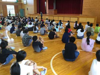 始業式では、子供たちは校長先生の話を集中して聞いていました。