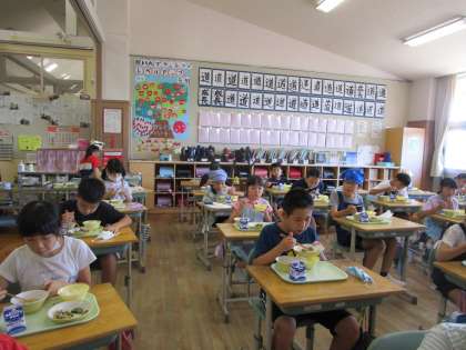 「おなか、すいたよ〜」の声も聞かれ、おいしい給食をいただきました。