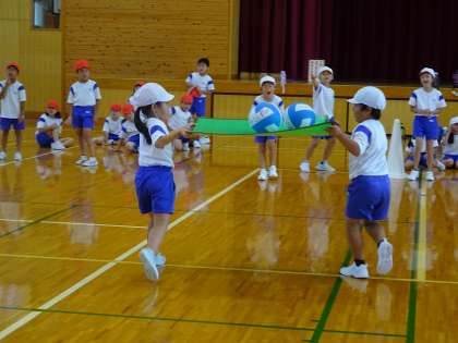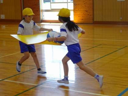 体育では、昨日に引き続き、ボールを使って運動しています。各団の結団式を終え、仲間意識が高まってきました!
