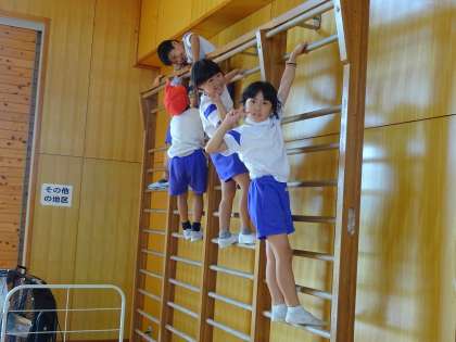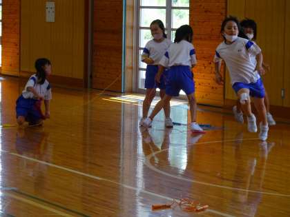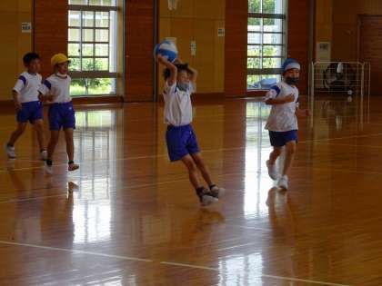 休み時間に体育館で体を動かしました!体調管理に気をつけながら、楽しく遊んでいます!
