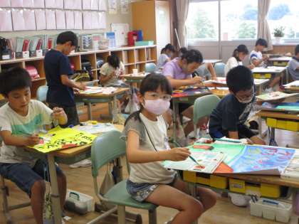 防火ポスターができあがってきました。目立つよう配色を考えて色塗りをがんばっています。