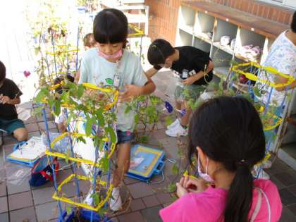 1年生 アサガオの観察 公開日 2020/08/25 更新日 2020/08/25 1年生 きれいな花を咲かせたアサガオの種が、たくさん出来始めました。子供たちは、実や種の様子をよく見て、じっくり観察していました。