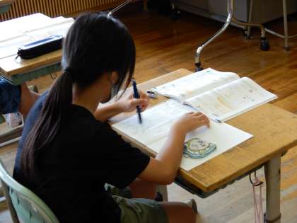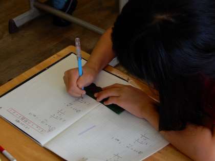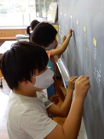 算数では、わり算の筆算の学習をしています。商の見当をつけながら計算をしています。