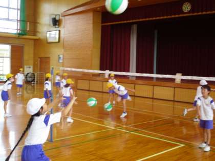 3年生 ネットの向こうへパス 公開日 2020/08/26 更新日 2020/08/26 3年生 体育科ではビーチボールを学習しています。ネットの向こうの友達とうまくパスを回せるように頑張って練習しました。