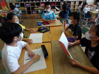 5年生 国語 公開日 2020/08/26 更新日 2020/08/26 5年生 ペットを飼うなら、犬か猫か、2つの立場に分かれて、話し合いました。 それぞれのチームが犬や猫のよさを伝え合ったり、質問し合ったりしています。
