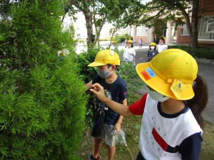図工の作品の材料となるお気に入りの葉を探しました。いろいろな色や形の葉を見付けることができました。