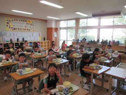 2年生 給食 公開日 2020/08/26 更新日 2020/08/26 2年生 2学期が始まり、おいしく給食を食べています。 写真を撮ろうとすると、大きな口を開けて食べようとする、子供たちがいました。