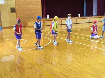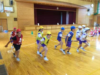 体育の学習では、団別リレーをしています。各団ごとに目当てをもち、うまくいかなかったことをよりよくしていこうと、声をかけ合いながら取り組んでいます。