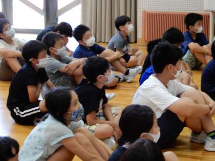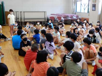 子供たちの言葉からスローガンが決定します。目当てに向かって、充実した体験学習会をつくり上げましょう。