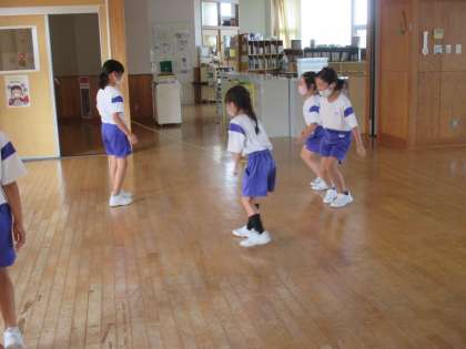 縄跳びがブームのようです!普通に縄跳びをするだけでなく、どの高さまで跳び越えられるか、挑戦していました。