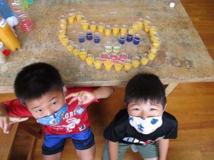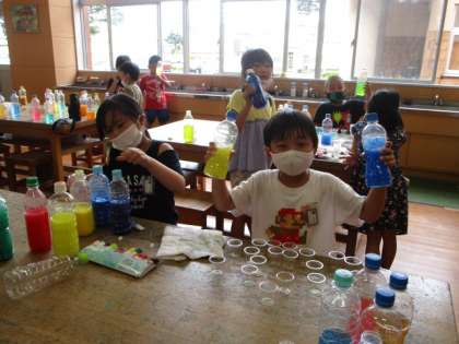 1年生 「カラフル色水」松組 その3 公開日 2020/09/10 更新日 2020/09/10 1年生 2回目の「カラフル色水」を行いました。絵の具でいろいろな色をつくって、前回よりパワーアップしていました。