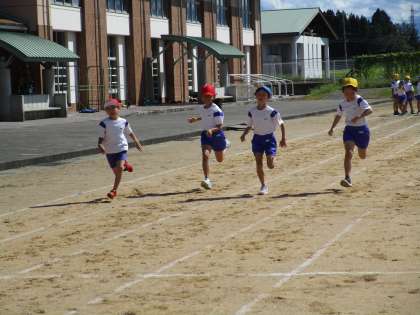 体育では50m走を行いました。速さの近い友達と競い合い、よいタイムを出すことができました。運動会に向けて頑張っていきます。