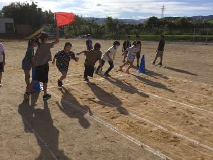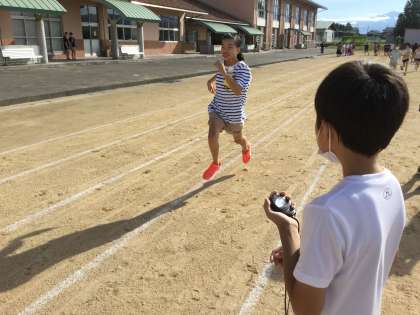 今日は、高学年がグラウンドでパワーアップ運動を行いました。子供たちは自主的に、走力を高めようと何本も50mを走ったり、当番の仕事に専念したりしていました。