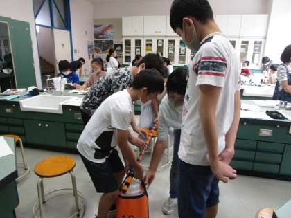 6年生 てこのはたらき 公開日 2020/09/16 更新日 2020/09/16 6年生 理科の「てこのはたらき」の初めての学習の時間です。 てこを使って、10kgのおもりを持ち上げました。 「はじっこをもつと軽く感じるよ」 「支点と力点が近いとすごく重いから、2人でやってみようよ」 てこを使いながら、色々なことに気付き、友達と話し合っていました。