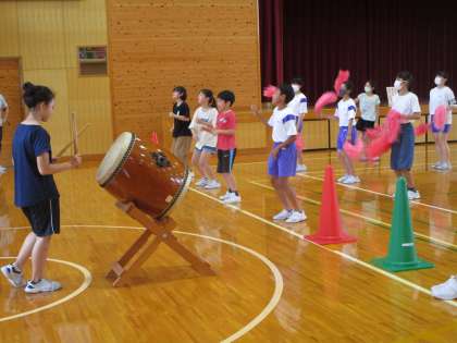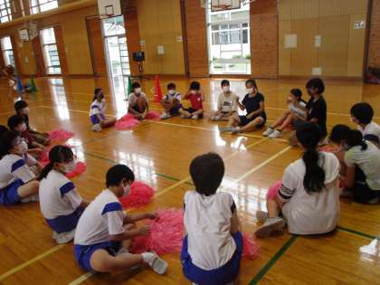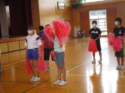 体育館で各色団の応援を見せ合いました。