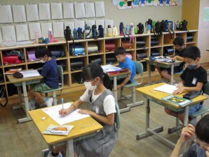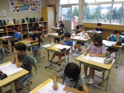 国語のテスト中です。集中して真剣に取り組んでいます。