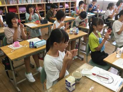 保健では、生活習慣病について学習を進めています。歯の健康と生活習慣が関係していることを知り、子供たちは鏡を見ながら、自分の口の中の状態を真剣に確かめていました。