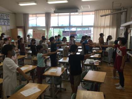 6年生 伝えよう1 公開日 2020/09/23 更新日 2020/09/23 6年生 今日は、6年生が考えている応援を5年生に教えました。5年生の応援リーダーを中心に、5年生にも高学年の仲間として一緒によい応援をつくっていってほしいと思います。