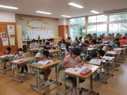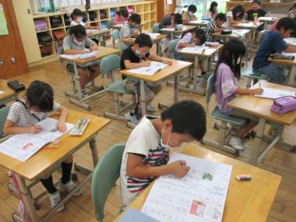 今日は「番」という漢字を学習しました。書き順に気をつけて、丁寧に書いていました。