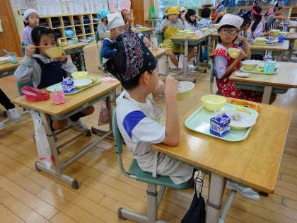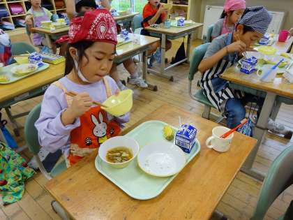 毎日おいしく給食を食べています。時間内に食べることを意識できるようになってきました!