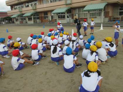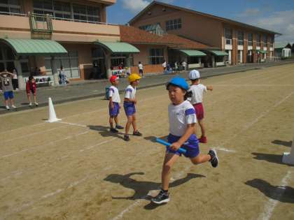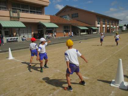 今日の体育の時間は、リレーの練習!バトン渡しもしっかりと身について、一生懸命に走っていました。