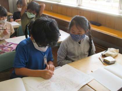4年生 変化を見つけよう 公開日 2020/10/02 更新日 2020/10/02 4年生 社会科では、郷土を開いた人々の学習に入りました。 今日は、黒部市にある十二貫野台地の昔と今をペアで見比べ、違いを見つけました。 「田んぼや家がとっても増えてるよ」「川が増えてるのに関係があるんじゃないかな」