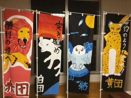 また、マスコットリーダーのがんばりもあり、応援全体練習の前にマスコット旗が完成しました!