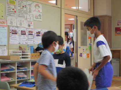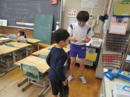 今日から清掃場所が変わったので、6年生さんが1年生を迎えに来てくれました。「6年生さんは、まだかな、まだかな」と心待ちにしていました。