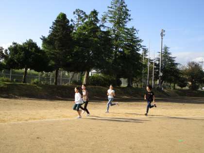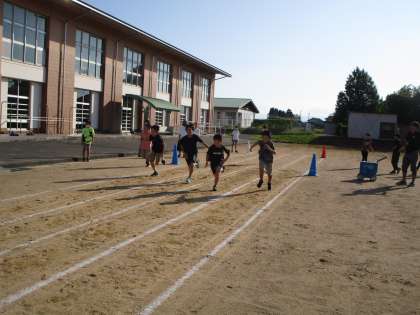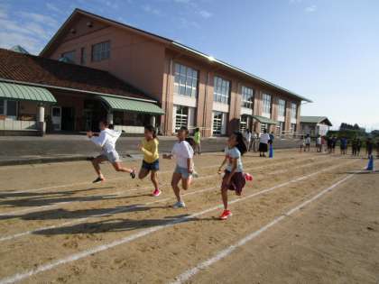 朝のパワーアップ運動の時間に、グラウンドで50メートル走の練習をしました。もうすぐ、運動会。練習にも力が入ります。