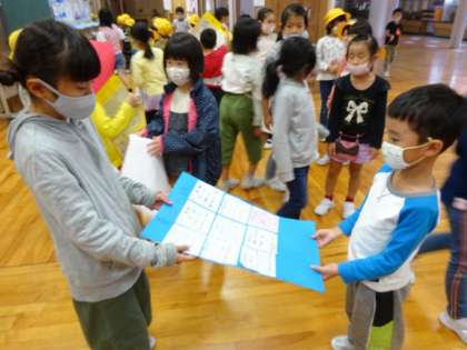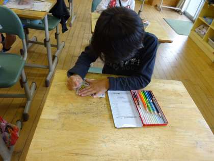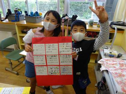 ファミリー班でプロフィールカードを作っています。今日は、自分のカードを書き、1年生にカードを渡しました。どんどんファミリーの仲が深まっています!