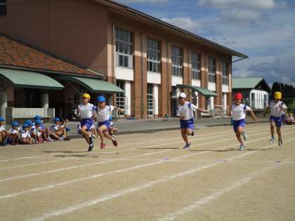 記録会では、体育の学習やパワーアップ運動で練習してきた成果をいかんなく発揮しました。真剣な表情で、力走する姿を見せた子供たち。閉会式では、「自分の目標を達成できた」「友達の応援が力になった」「誰もフライングをしなかった」など、自分の気持ちを進んでみんなに伝える姿が見られました。