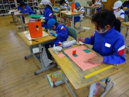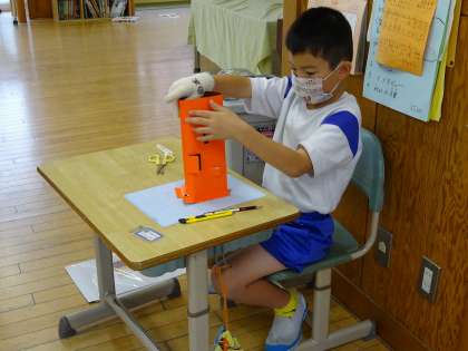 図工でカッターを使って作品作りをしています。今日から、いよいよ立体的に組み立てることを始めました!想像を膨らませて、楽しんで活動しています!