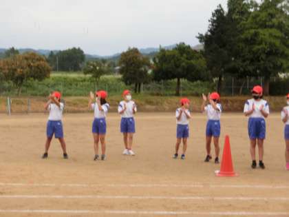 5年生 応援がんばっています2 公開日 2020/10/12 更新日 2020/10/12 5年生 50メートルを走っている2年生に、応援歌を歌ったり、「がんばれ〜」と声援を送りました。上級生らしい姿が見られました。
