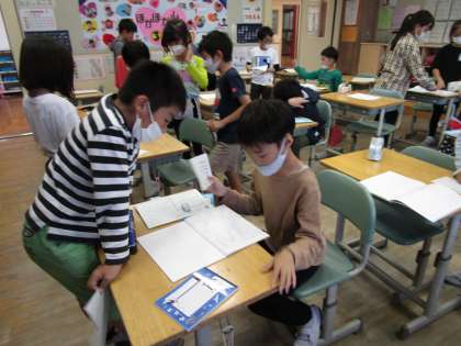 3年生 パワーアップノートコンテスト 公開日 2020/10/12 更新日 2020/10/12 3年生 パワーアップ習慣を終え、子供たちが工夫して書いたパワーアップノートを互いに見合い、よいところを認め合いました。友達のノートの工夫に驚き、「次は自分もやってみよう」という気持ちを高めている子供の姿も見られました。