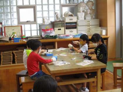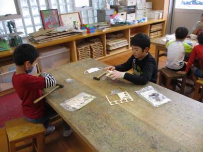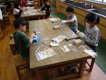 3年生 くぎうちトントン作品製作中 公開日 2020/10/13 更新日 2020/10/13 3年生 図工では、釘を打って作る作品に取り組んでいます。完成に向け、打つ角度や力に気を付けて頑張っています。