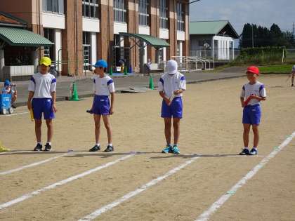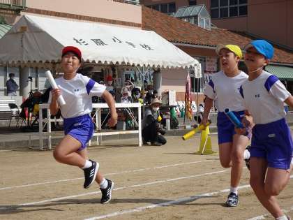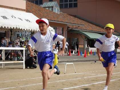 学年リレーの様子です。 どの団も力いっぱい走っていました。